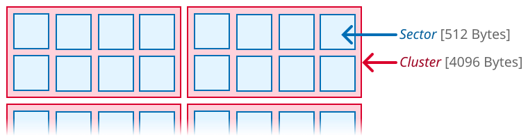Dernière chose importante à savoir sur les clusters c'est qu'il s'agit du plus petit élément que l'on peut allouer pour stocker des données sur le disque. Si on veut écrire 1 octet, il faut donc allouer un cluster complet.